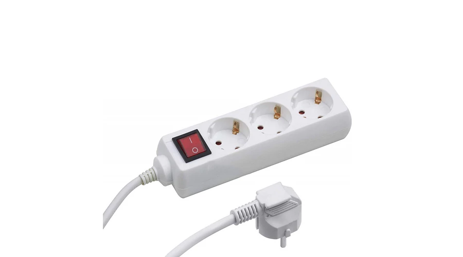 Kapcsolóval szerelt hálózati elosztó 3 darab schuko aljzattal. A fehér színű, gyermekvédelemmel ellátott hosszabbító 3 méteres kábelhossznak köszönhetően a konnektortól távolabb lévő készülékek beüzemelését teszi lehetővé a villamos hálózatra történő csatlakoztatással. IP20-as védettsége miatt elsősorban beltéri felhasználásra ajánlott, maximális terhelhetősége 3500W.