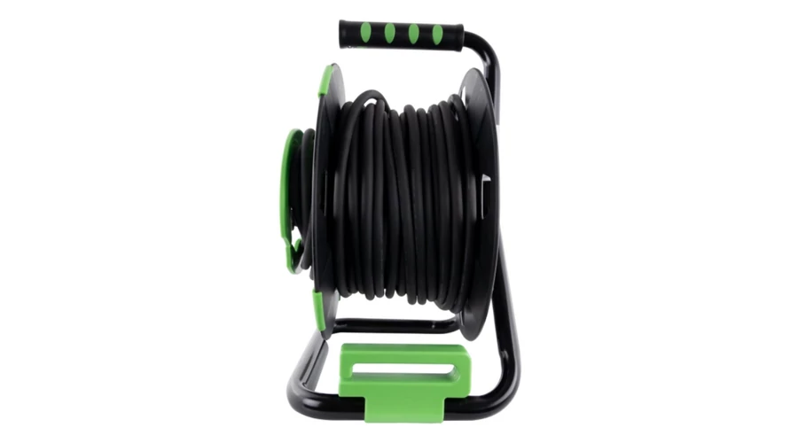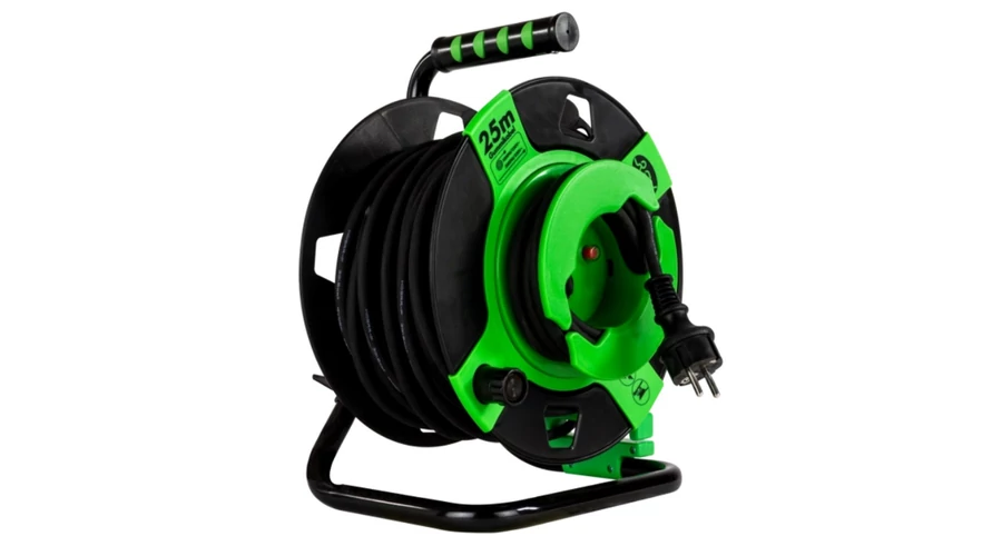 Rendszerezett tárolás: A kábeldob kialakítása megakadályozza a kábel összegabalyodását és megtörését, meghosszabbítva ezzel az élettartamát. Könnyen le- és feltekerhető.