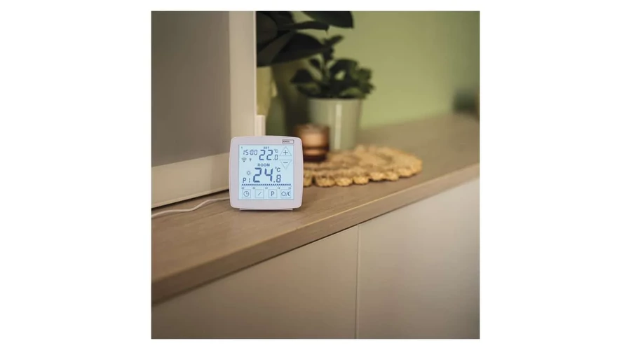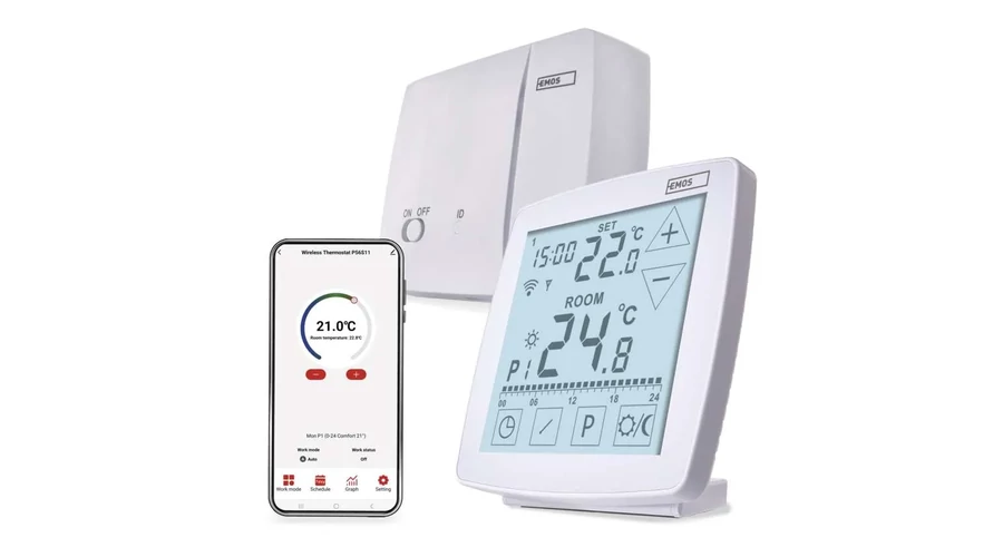 EMOS GoSmart Programozható Vezeték Nélküli Szobatermosztát, WiFi-vel (P56S11) Az EMOS GoSmart P56S11 egy két egységből álló, modern, vezeték nélküli programozható okos szobatermosztát, amely ideális megoldást kínál a gázkazánok, cirkók és egyéb (fűtő/hűtő) rendszerek intelligens és rugalmas vezérlésére. A vezeték nélküli kialakításnak köszönhetően a mérőegység a fűtendő helyiség bármely pontjára elhelyezhető anélkül, hogy kábeleket kellene vezetni a falban. |