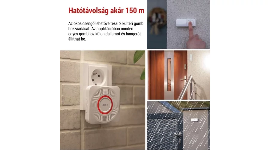 Elmark vezeték nélküli csengő dugaljba dugható 100 méter hatósugár 36 dallam