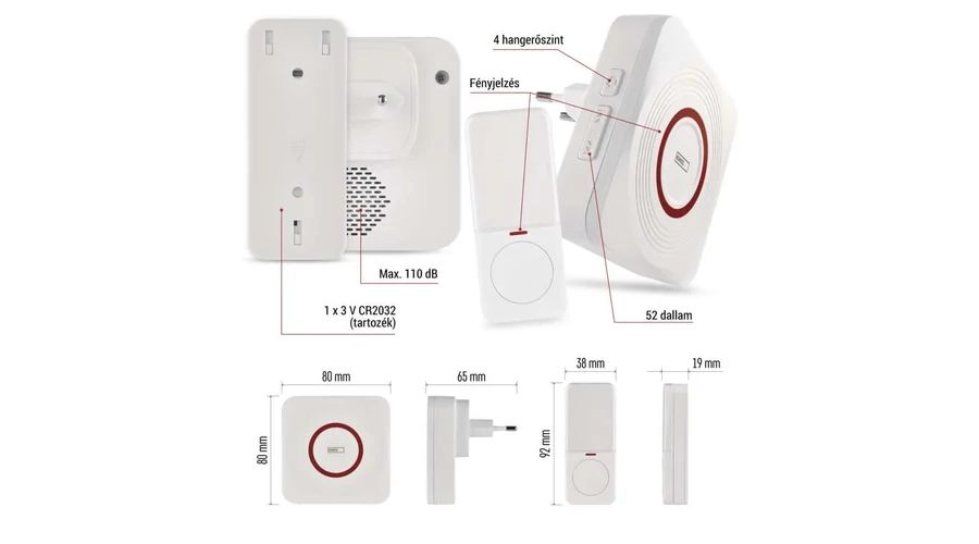 | csengő méretek | 80 × 80 × 65 mm |