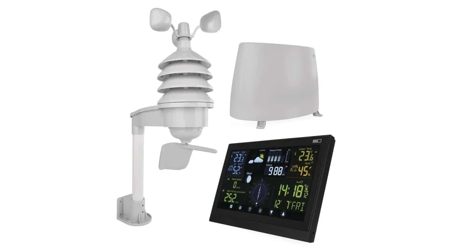 A tartozékként biztosított vezeték nélküli csapadék- és szélérzékelő segít 100%-os ellenőrzésünk alatt tartani az időjárást. Ennek a praktikus segédnek köszönhetően a kijelzőn figyelemmel kísérhetjük a szélsebesség értékét és a teljes csapadékmennyiséget.