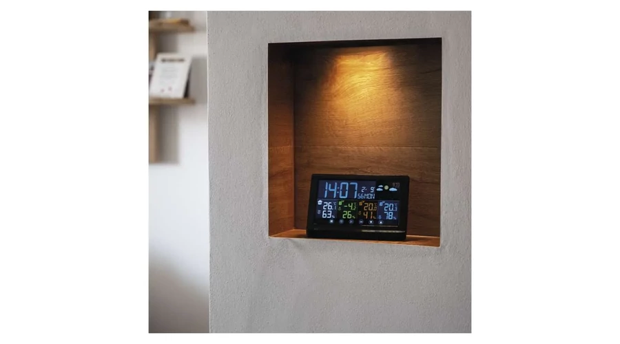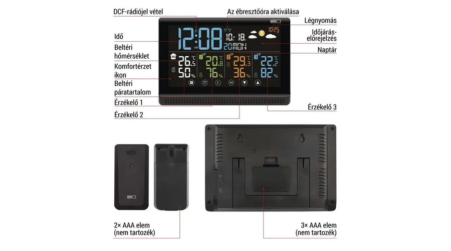 Home HCW 01 időjárás-állomás külső jeladóval, várható időjárás-szimbólumok, ébresztés szundi funkcióval, maximum és minimum értékek kijelzése HCW 01
