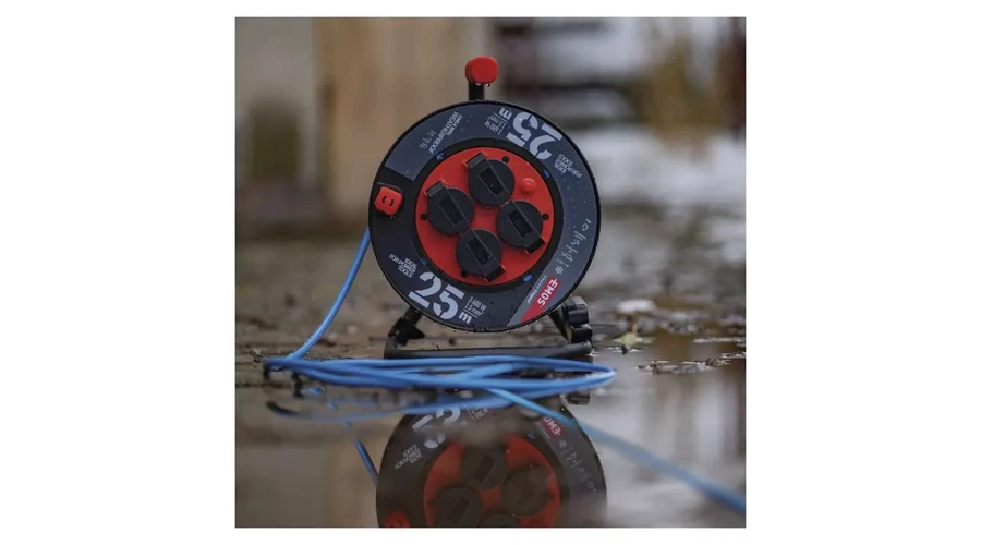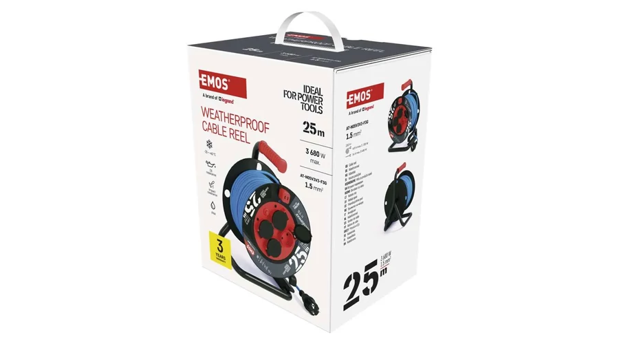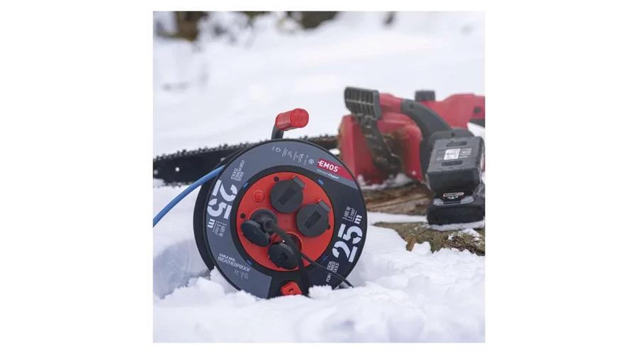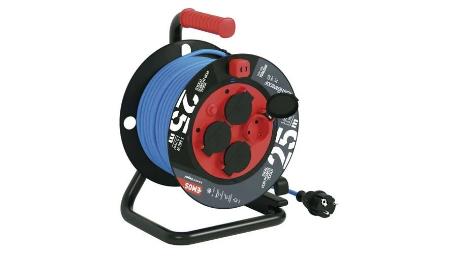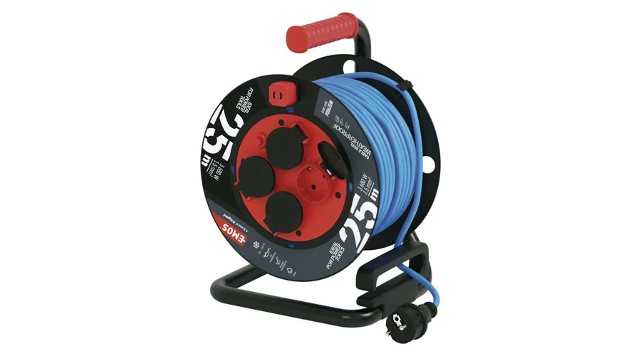 Emos Weatherproof kábeltekercs kábeldob 25m 4 aljzat kék szilikon AT-N05V3V3-F 230V 1,5 mm2 P08625W
