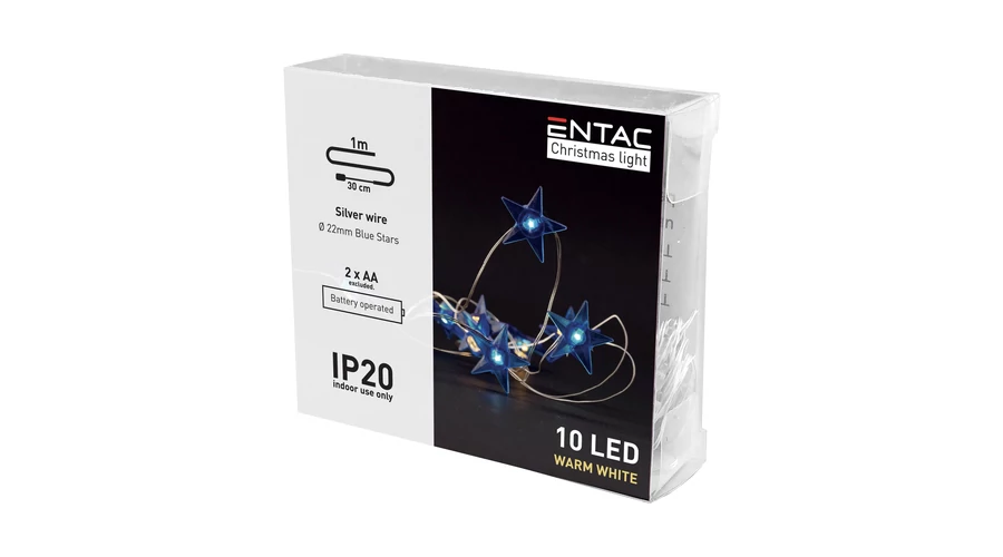 Entac karácsonyi fényfüzér beltéri 1,3m kék csillag 10 LED meleg fehér IP20 ECL-BS-10WW