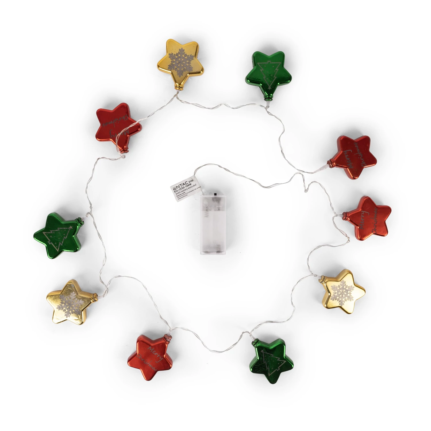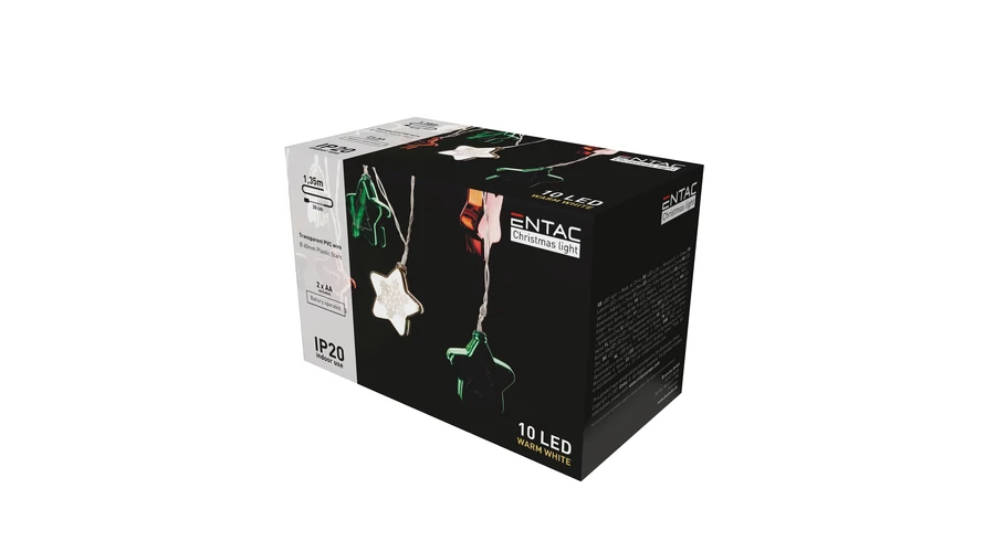 Entac karácsonyi fényfüzér beltéri 1,65m színes csillag 10 LED meleg fehér IP20 ECL-CCSD-10WW