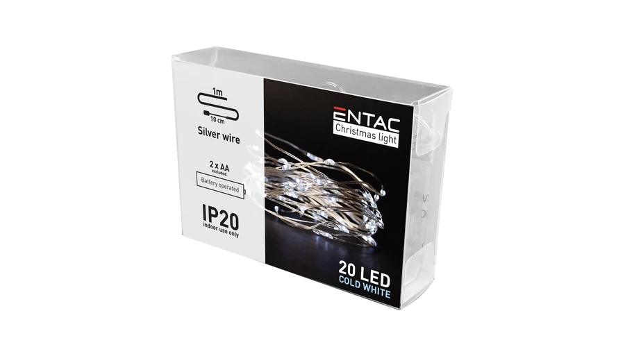 Entac karácsonyi nano fényfüzér beltéri 1,1m 20 LED hideg fehér IP20 ECL-S20CW