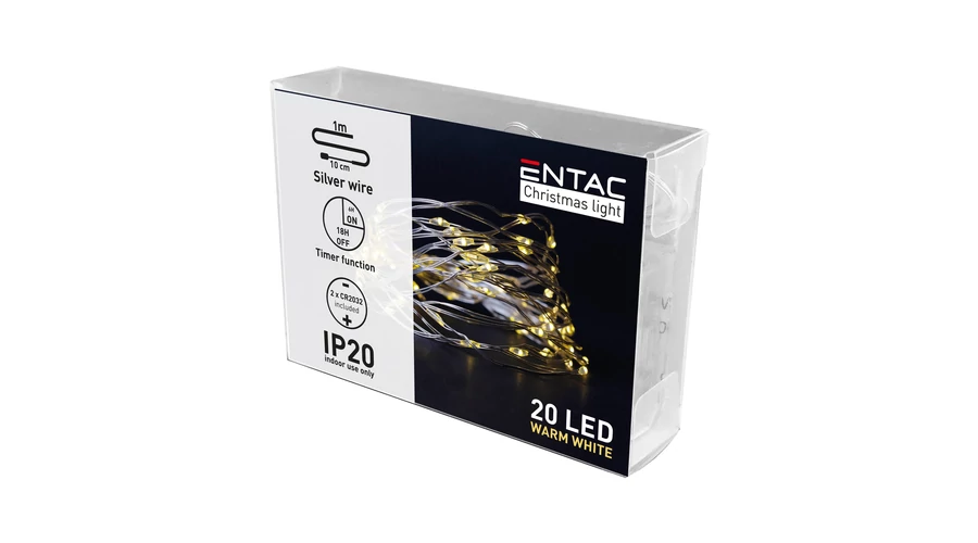 Entac karácsonyi nano fényfüzér beltéri időzítővel 1,1m 20 LED meleg fehér IP20 ECL-S20WW-T