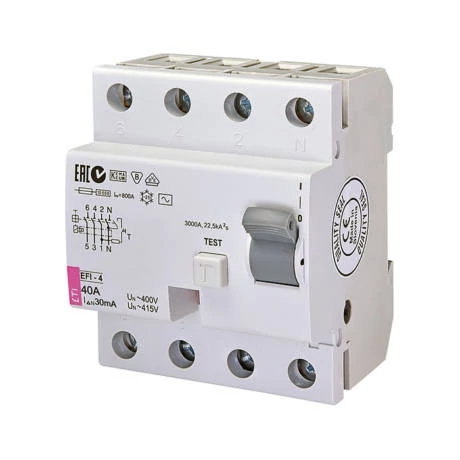 ETI 4P Fi relé 40A 30mA AC érintésvédelmi relé EFI-4 AC 40/003 Áram- védőkapcsoló 002061612