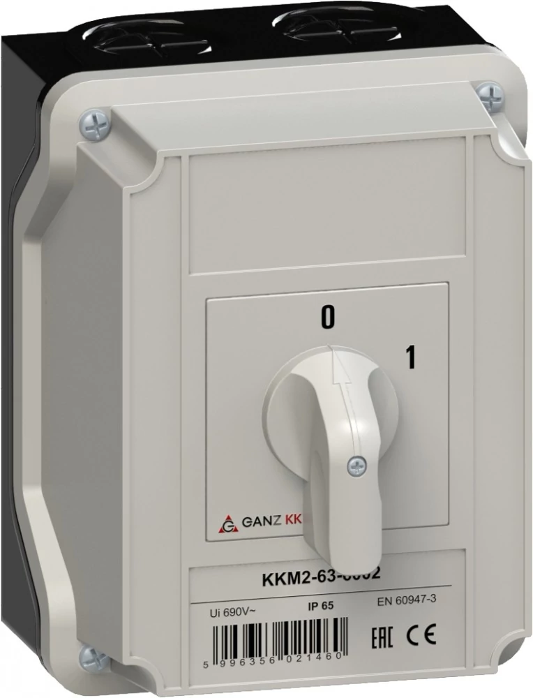 Ganz KKM2-63-6002 ipari tokozott kézi kapcsoló be-ki, 0-1, 3pólus