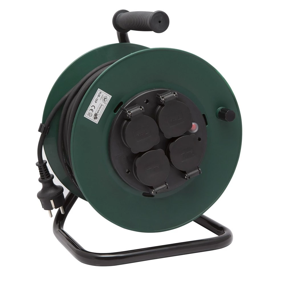 Home HJR 4-40 kábeldob, 40 m, IP20 kivitel, fém talp, H05VV-F 3G1,0 mm2 kábel, max. 2300 W, védőkapcsoló, 4 védőérintkezős aljzat HJR 4-40