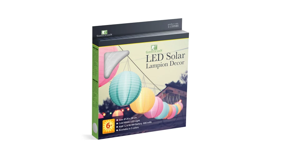 Garden of Eden kültéri LED-es szolár lampion 3 színben hidegfehér 600mAh D28x28cm 11399H