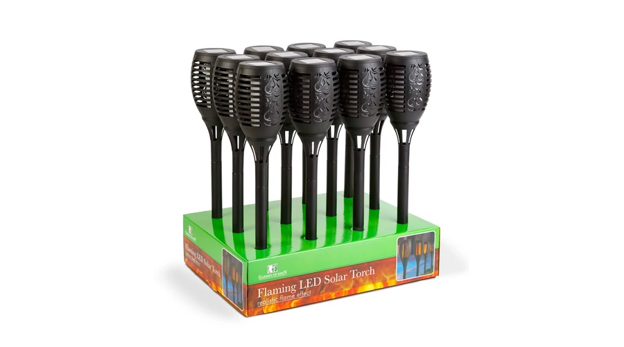 Garden of Eden LED-es szolár lámpa leszúrható lángeffekt 12 sárga LED műanyag fekete 10x58 cm 11262C