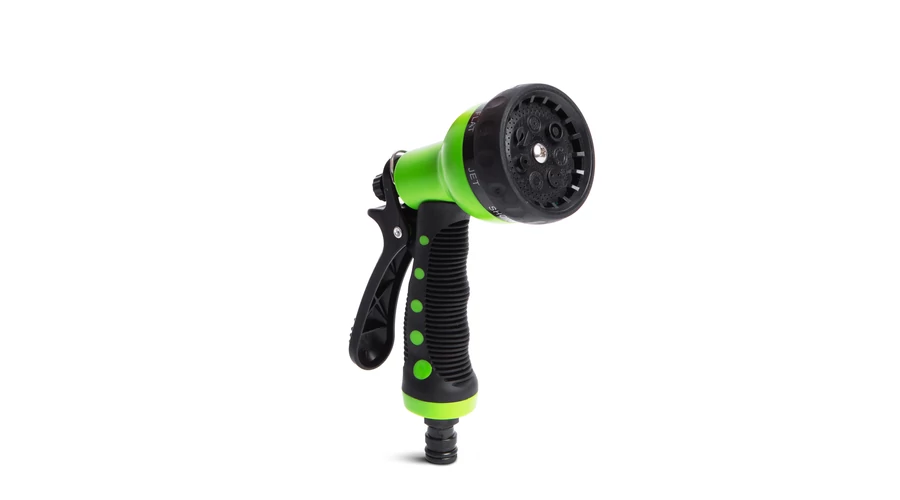 Műanyag locsoló pisztoly, amely 7 db locsolási funkcióval rendelkezik, így garantáltan megtalálja az Önnek szükséges vízsugarat, legyen szó porlasztásról vagy vékony vízsugárról. A gyorscsatlakozó kuplung segítségével könnyen hordozható egyik öntözőtömlő végéről a másikra. A kitámasztókarnak köszönhetően nem szükséges a locsolás teljes ideje alatt nyomvatartania a ravaszt.