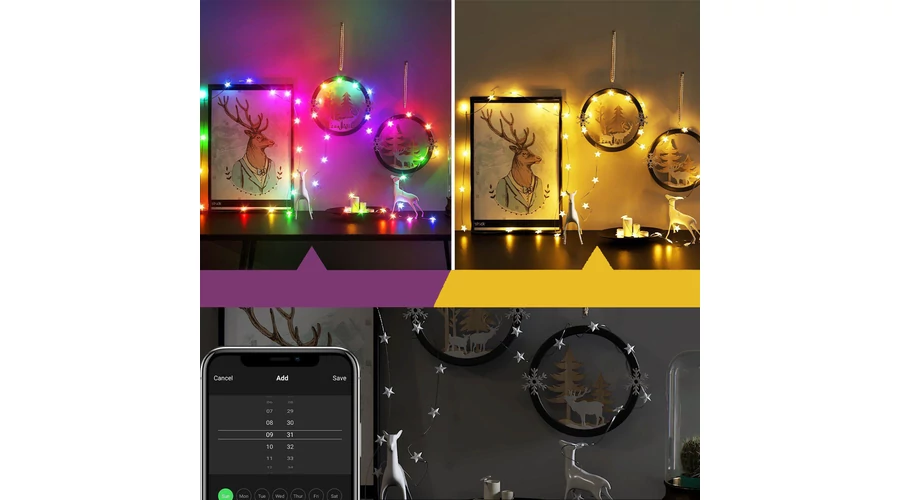Fedezze fel az okos világítás új dimenzióját ezzel a kiváló minőségű, magával ragadó smart fényfüzérrel. A 20 db LED-ből álló fényfüzér lenyűgöző fényhatást nyújt, amelyet egyetlen ujjmozdulattal irányíthat az ingyenesen letölthető mobilalkalmazás segítségével.