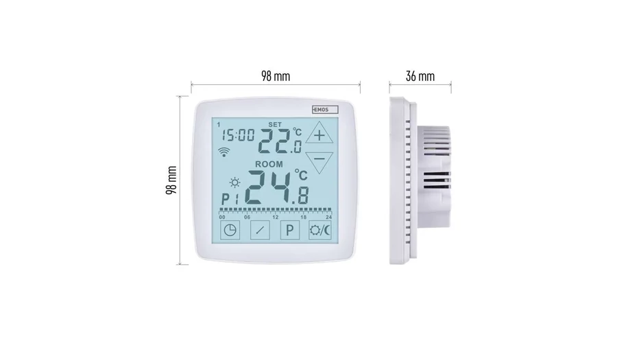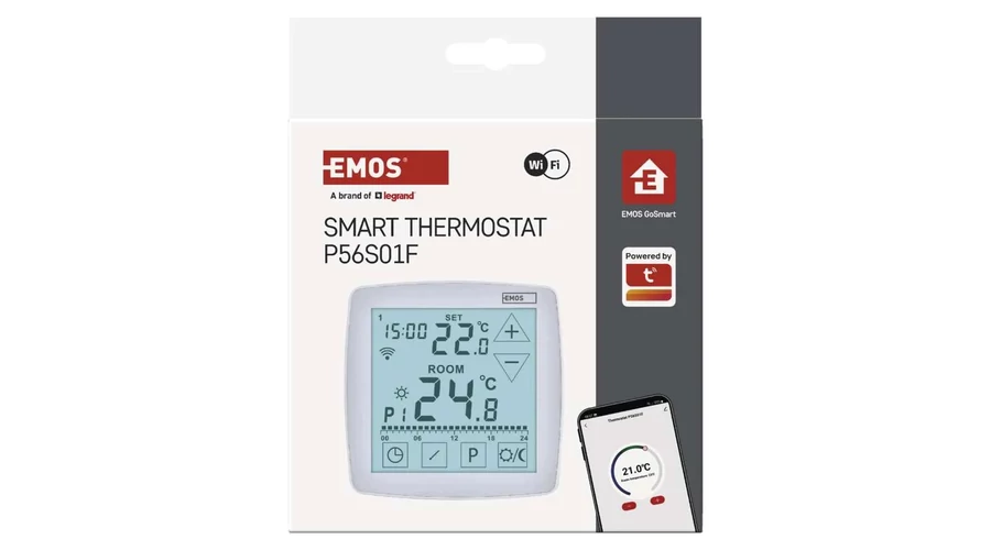 Mobilalkalmazás (EMOS GoSmart/TUYA): A beépített WiFi modulnak köszönhetően a fűtés távolról, okostelefonos alkalmazással vezérelhető (iOS és Android).