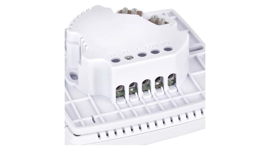 Vezetékes és süllyesztett: A termosztát fixen, süllyesztve épül be a falba, biztosítva ezzel a letisztult és elegáns megjelenést.