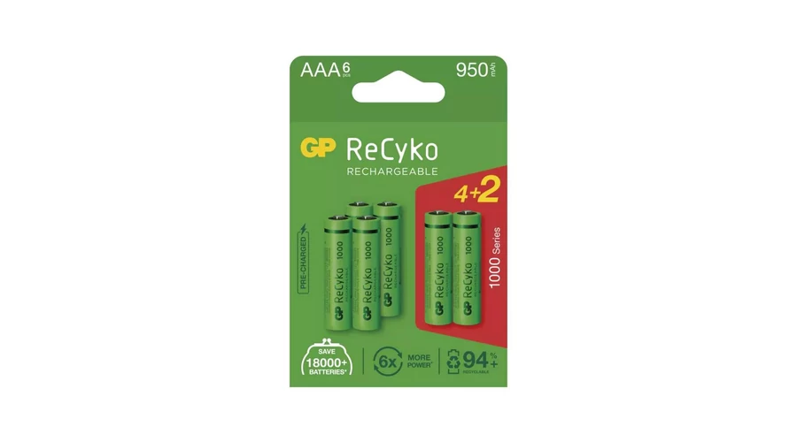 GP ReCyko NiMH tölthető 4+2 db akkumulátor HR3 AAA mikro ceruza 1000mAh B2111V
