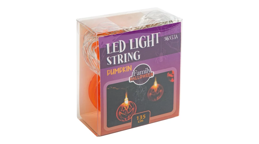 Halloween LED-es fényfüzér tök 10 LED 2xAA 1,35m 56533A