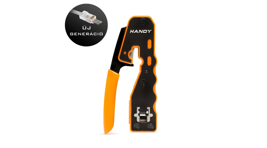 Az UTP csatlakozók új generációjához is használható krimpelő fogó, amely segítségével hatékonyan tud dolgozni. A szerszámot úgy tervezték, hogy az átmenő UTP dugókból kilógó kábelt a krimpeléssel egyidőben levágja, ezáltal időt és energiát takaríthat meg. Segítségével minimalizálható a hibás kábelek készítése!