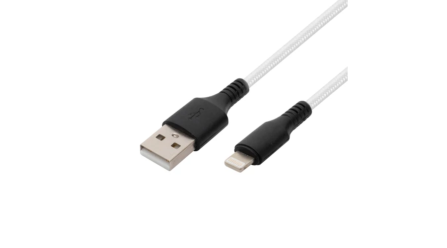 Home USBAL1 töltőkábel, USB A / Lightning, 2.1A, 1m, szövött, fehér USBAL1