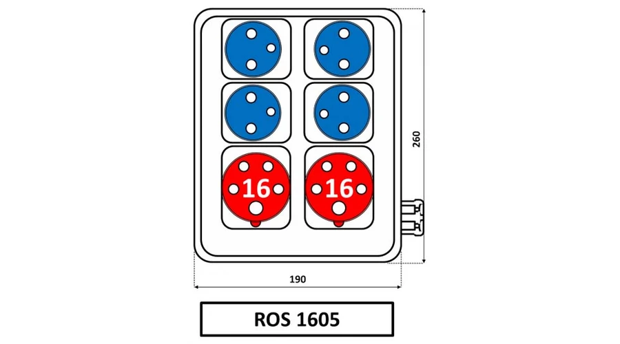 SEZ ipari elosztó doboz szerelt 250V 4x16A IP54 ROS 5/X-16 A/S