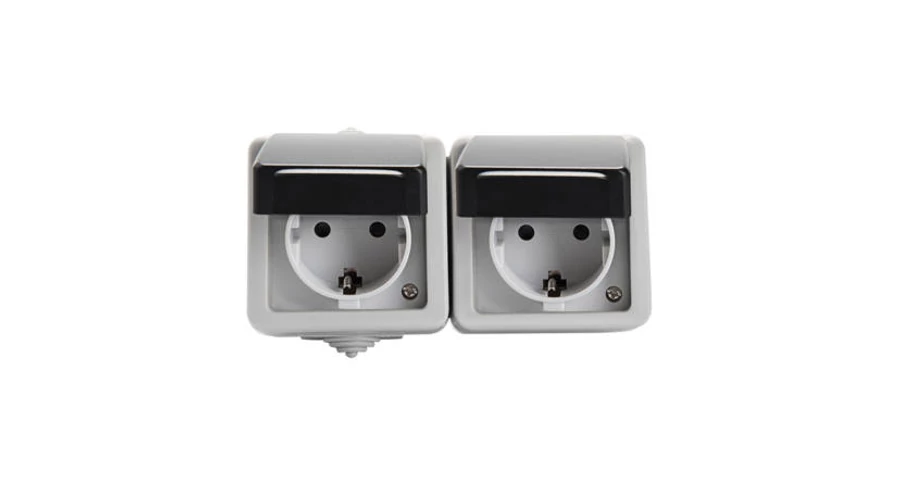 Kanlux Tekno 2x2P+F dupla dugalj gyerekvédelemmel kültéri vízmentes szerelvény falon kívüli 27131