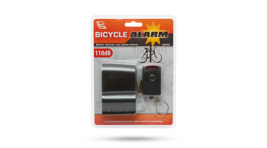 Önnel is előfordult már, hogy lezárta kerékpárját és mire visszaért nem találta sehol? Tudja nagyobb biztonságban ennek a bicikli riasztónak köszönhetően. A termék a kerékpárlopás elleni védelmet hivatott növelni. Távirányító segítségével tudja élesíteni, illetve kikapcsolni a védelmet. Bekapcsolt állapotban, a kerékpár mozgatásának hatására a riasztó 110 decibeles riasztóhangot ad ki. A riasztás kb. 30 mp-ig tart, ha újabb érzékelés történik a riasztó ismételten megszólal.