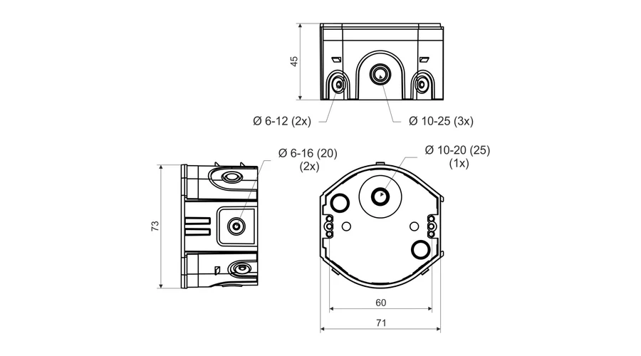 KOPOS KOLIN Szerelvénydoboz átmérő 73mm, furat átmérő 80mm mélység 66mm rugalmas anyagból készült bevezető nyílások KP 68/D KA