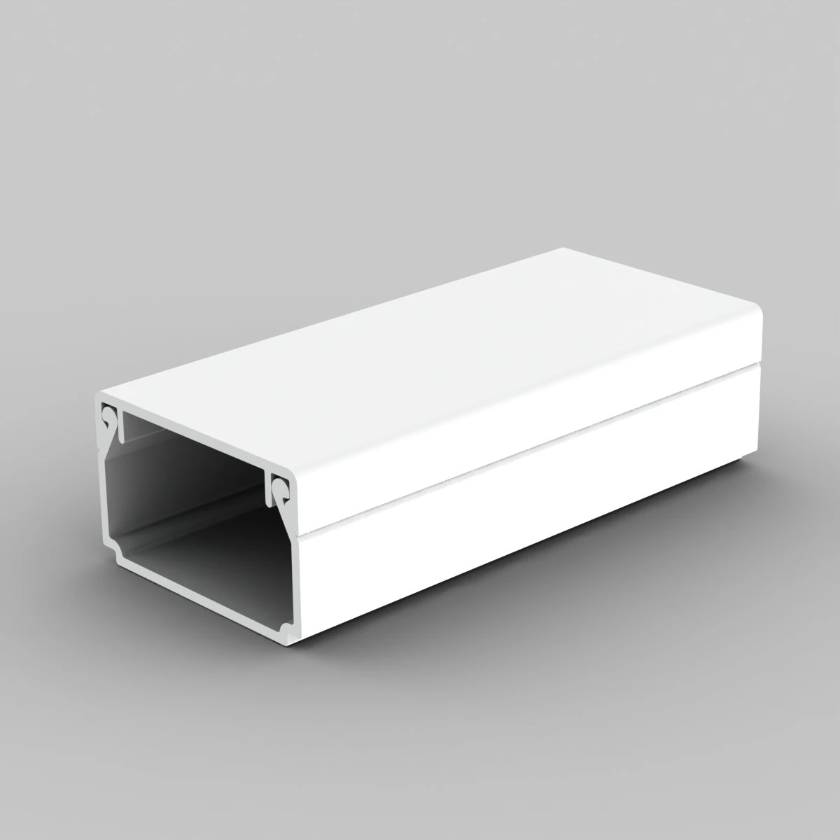 Hagyományos forma. Falra vagy mennyezetre rögzítésre is alkalmas. A fedél dupla zárása megnöveli a csatorna szilárdságát és a fedél rögzítését.