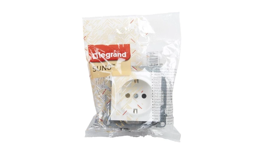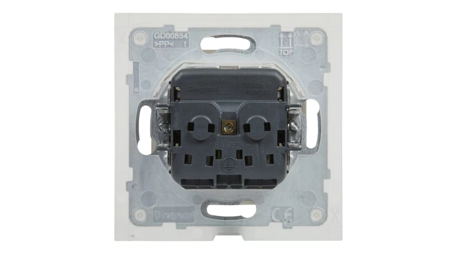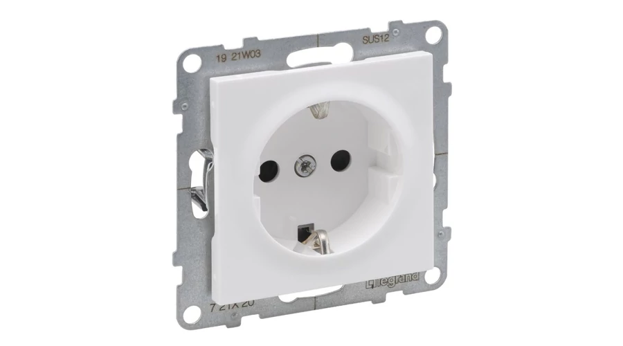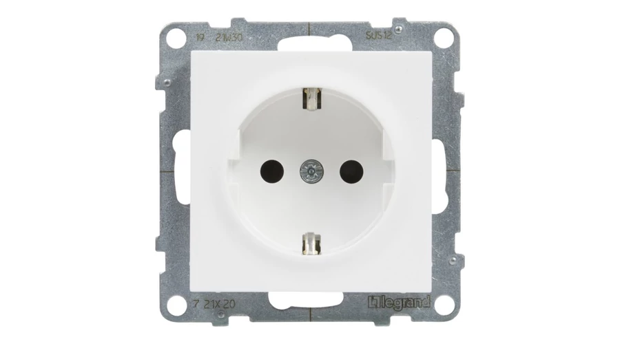 Legrand Suno 2P+F csatlakozóaljzat dugalj (rugós), biztonsági zsaluval, fehér keret nékül 721120