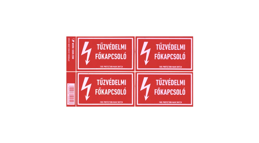 Matrica 100x60 mm Tűzvédelmi Főkapcsoló jelzéssel ERVT18/01V217