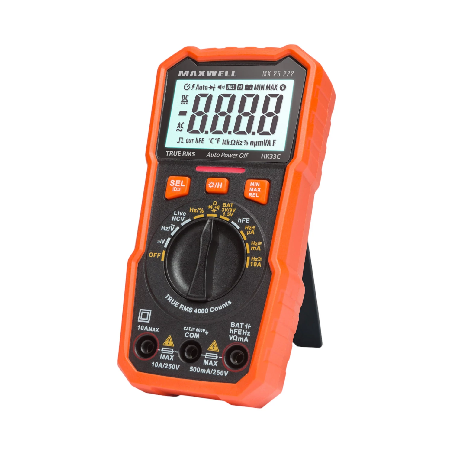 A Maxwell műszerek új MX sorozata a kompakt méretű műszerek kategóriáját erősíti. Alapfunkcióin kívül, munkalámpa funkcióval elemteszterrel, háttérvilágítással és érintés nélküli feszültség kereséssel van ellátva. A készülék tetején található szenzor segítségével detektálhat feszültséget, anélkül, hogy a megbontaná a kábelezést. Strapabíró készülékháza biztosítja a problémamentes használatot minden körülmények között.