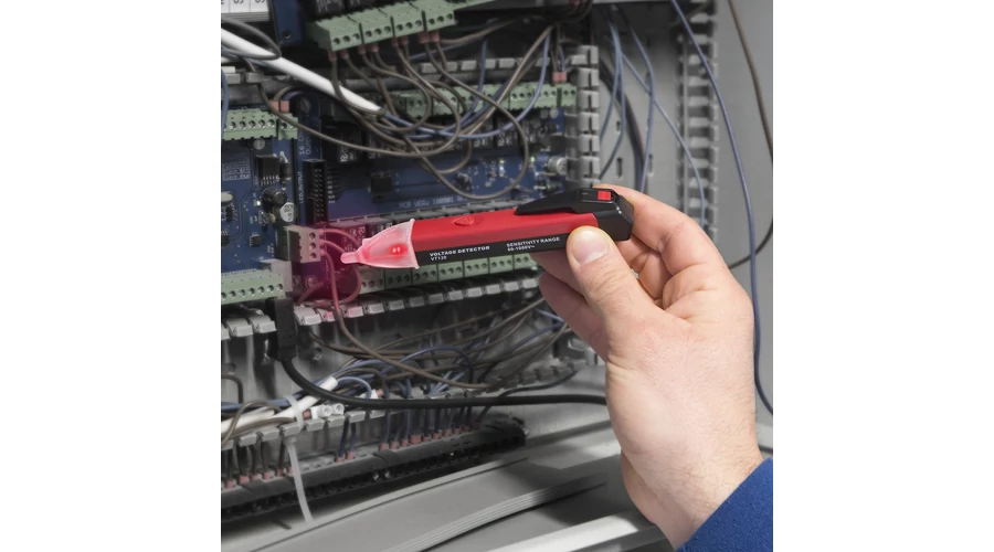 Érintés nélküli feszültség detektor beépített LED munkalámpával. Alkalmas AC feszültség érzékelésére konnektoroknál, kábelcsatornában, árammegszakítóknál és vezetékeken. Kényelmes toll formájának köszönhetően akár zsebben is elfér. Fényt és hangjelzést ad feszültség jelenlétekor. Használat közben nem érintkezik semelyik felülete fémesen a mérendő felülethez, ezzel az áramütés veszélye minimálisra csökken, így még biztonságosabban állapítható meg a fázis helyzete.