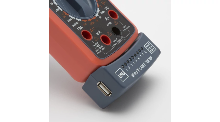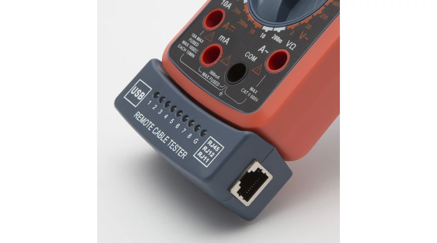 2 az 1-ben műszer, általános multiméter funkciókkal, kábeltesztelő egységgel kiegészítve. A kontroll egység levehető és szabadon hordozható. RJ11, RJ12, RJ45 és USB vezetékek teszteléséhez alkalmazható.