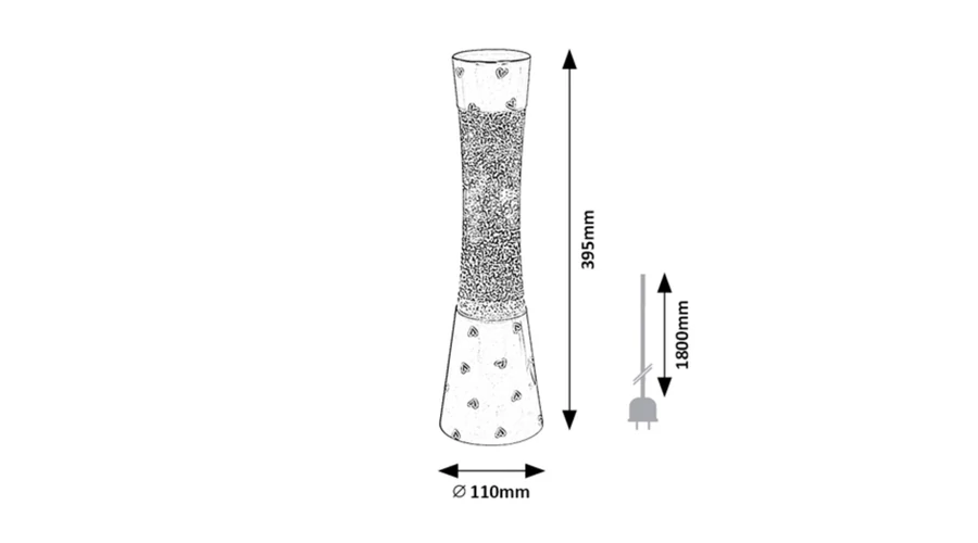 A karcsú Minka dekorlámpa hangulatos kiegészítője lehet a nappali, a hálószoba vagy a gyerekszoba berendezésének. Ez a varázslatos kék színben játszó lávalámpa műanyagból és üvegből készül, és egy darab, legfeljebb 20 W teljesítményű fényforrással használható. A foglalat típusa GY6.35. A Minka a Rábalux saját tervezésű, gyermekek számára is biztonságos modellje. A lámpatest világűrt idéző mintája és a lámpa belsejében fénylő csillámdekor látványa bizonyosan kellemesebbé teszi az elalvást a kisebbek számára is. A felnőttek pedig a nappaliban vagy a hálószobában élvezhetik az esti órákban a lávalámpa által teremtett varázslatos hangulatot. A Minka magassága 395 mm, átmérője 110 mm. Ezt a modellt fényforrással és adapterrel együtt szállítjuk. A bemelegedési idő 3 óra.