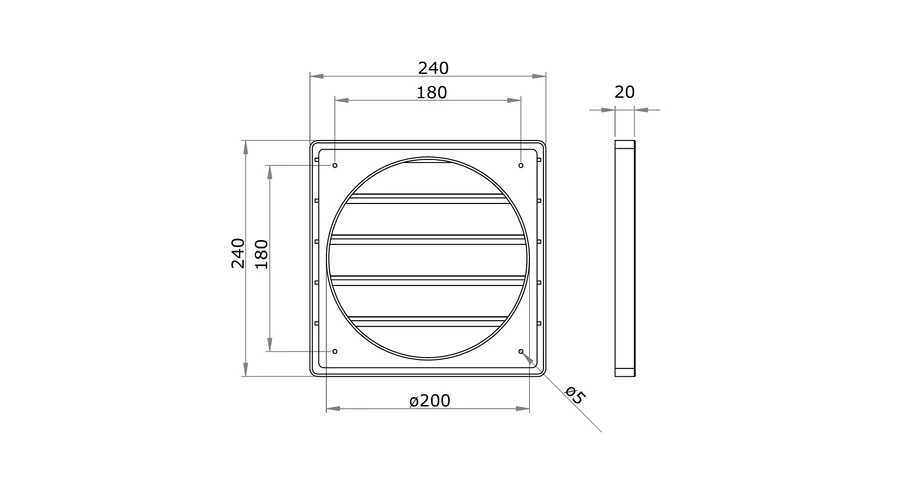 Műanyag gravitációs zsalu 240x240mm / Ø 200mm DGP200
