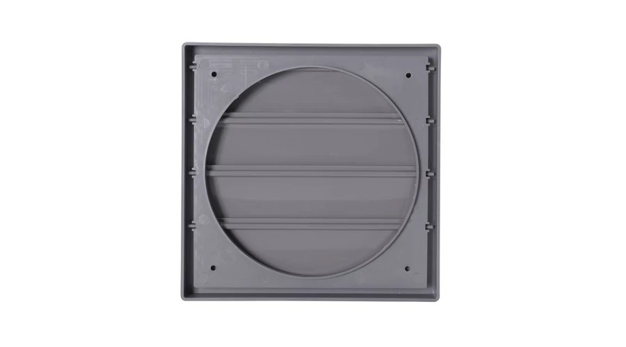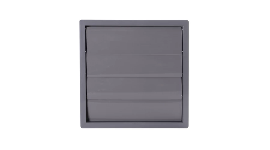 Műanyag szürke UV álló szellőzőrács, gravitációs zsaluval axiális fali ipari ventilátorokhoz! A rács lakások, ipari területek, konyhák, fürdőszobák, irodák, üzletek, raktárak, garázsok stb. szellőztetésére is alkalmas. A ventilátor bekapcsolásánál a zsaluk kinyílnak a kikapcsoláskor bezáródnak, megakadályozva ezzel a nem kívánt tárgyak és levegő visszafele jutását.