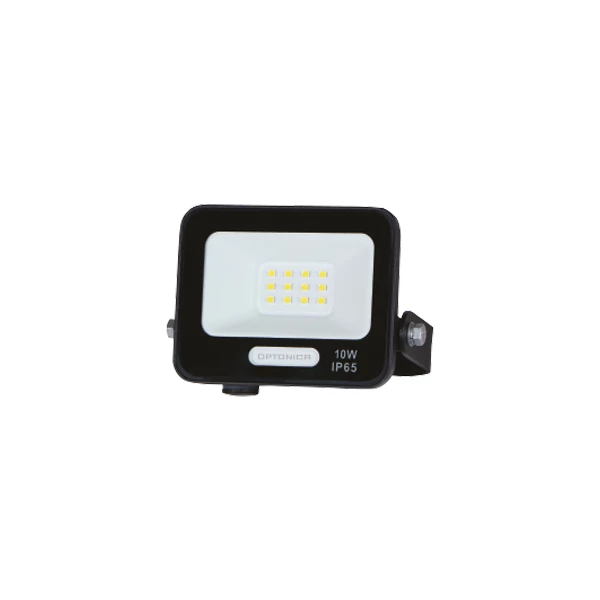Az Optonica 10W LED reflektor kiváló választás kül- és beltéri világításra, erős fényerejének és meleg fehér színhőmérsékletének (3000K) köszönhetően. Kiváló 900 lumen fényáramot biztosít 90 lumen/W fényhasznosítással, ami kiemelkedő energiahatékonyságot jelent. A 120°-os sugárzási szög széles fényeloszlást tesz lehetővé, míg az IP65 védelem garantálja a por- és vízállóságot. A 101,5 x 98 x 26 mm méretű, fekete színű lámpatest SMD LED chipekkel szerelt és 15 centiméteres tápkábellel csatlakoztatható az elektromos hálózatra.