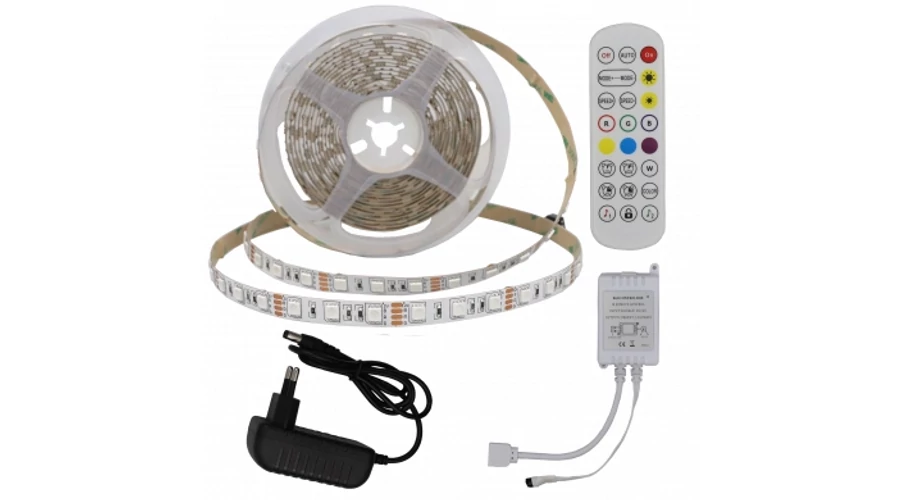 szett tartalma LED szalag, adapter, vezérlő, távirányító