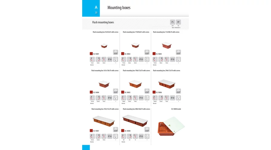 A Pawbol süllyesztett műanyag vezeték kötődoboz 160x130x70mm OL10004 erős, IP30-as védelemmel ellátott kivitelben készül. Hatékony védelmet nyújt a por és a fröccsenő víz ellen, miközben biztosítja a vezetékek biztonságos elrendezését és rögzítését. Remek választás beltéri és mérsékelten nedves környezetekben végzett villanyszerelési munkákhoz, megbízható és hosszú távú csatlakozást garantálva.