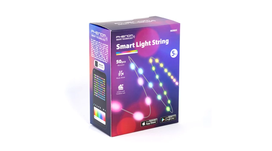Fedezze fel az okos világítás új dimenzióját ezzel a kiváló minőségű, magával ragadó smart fényfüzérrel. Az 50 db LED-ből álló fényfüzér lenyűgöző fényhatást nyújt, amelyet egyetlen ujjmozdulattal irányíthat az ingyenesen letölthető mobilalkalmazás vagy a tartozék távirányító segítségével.