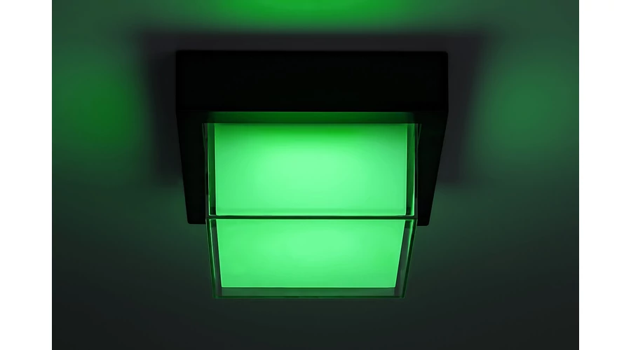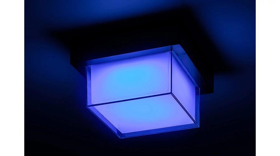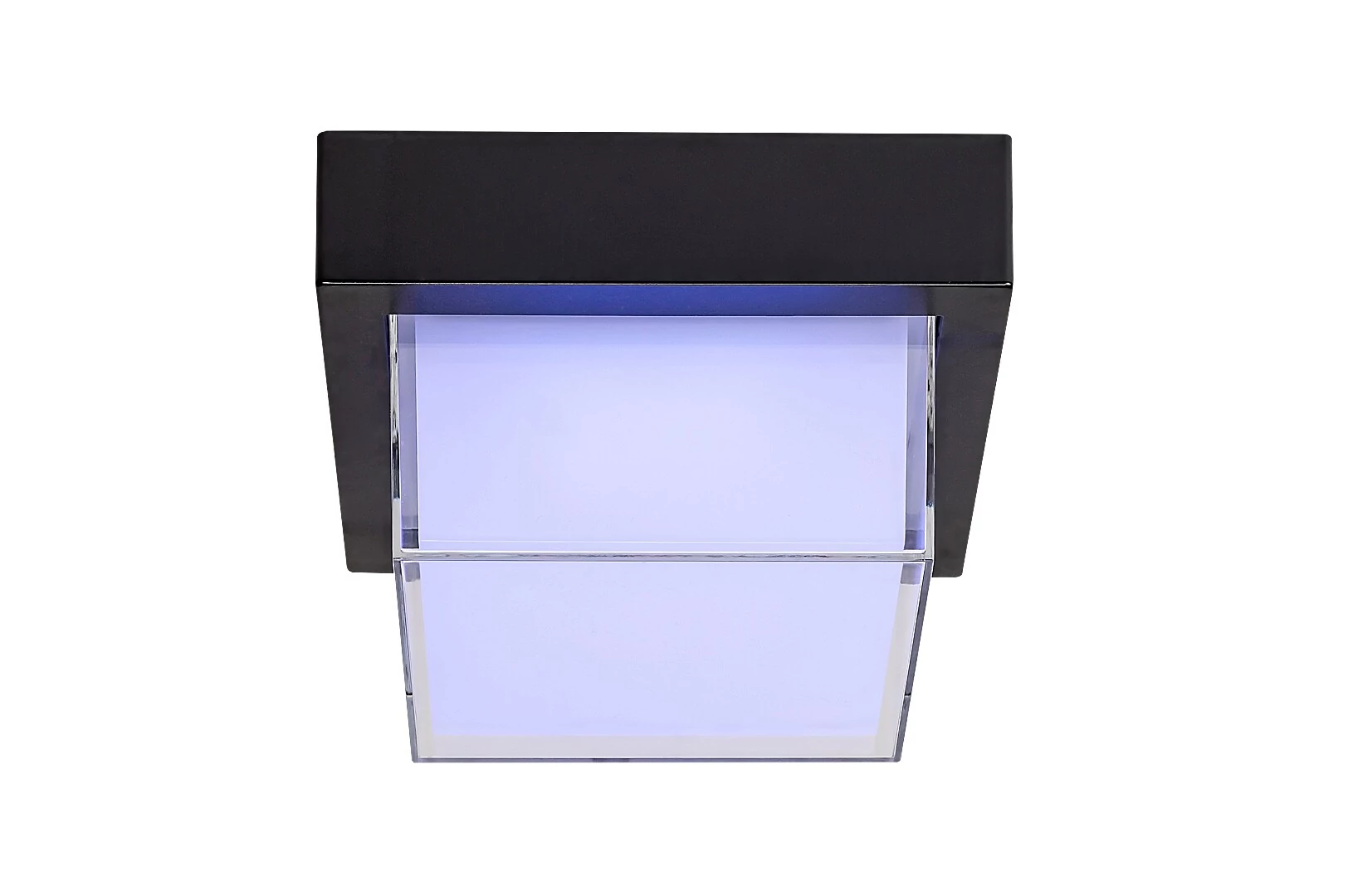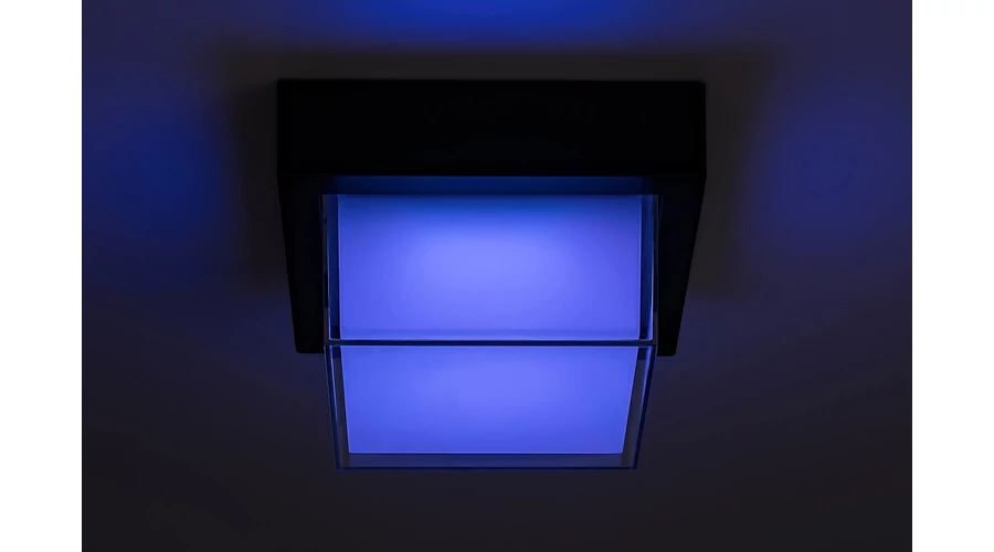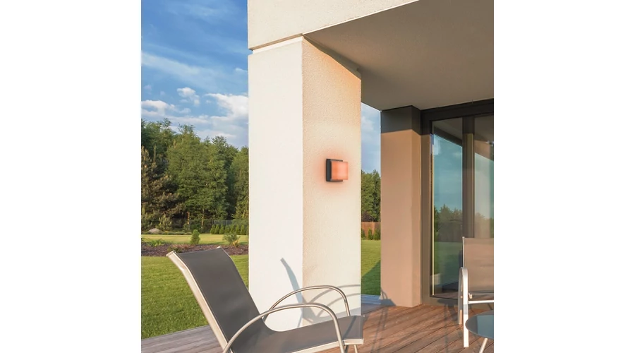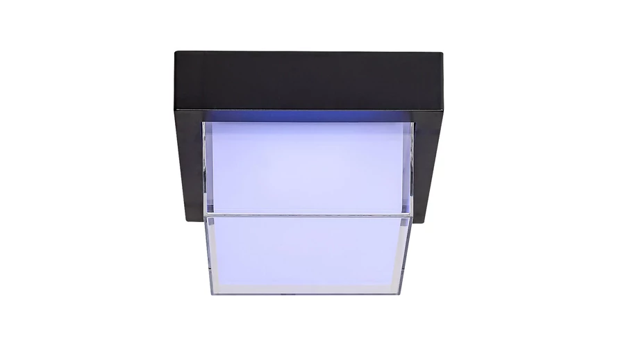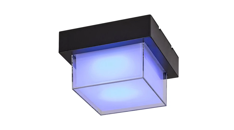 A modern stílusú, szögletes Durbe kültéri fali / mennyezeti lámpa számos extra funkciójával minden igényt kielégít. Elsősorban a teraszra vagy a ház külső falára ajánljuk. A fekete színben fehér búrával készült okos lámpa anyaga teljes egészében műanyag. Beépített LED fényforrása a G energiaosztályba tartozik, teljesítménye 10 W, fényereje búrával 790 lumen, búra nélkül 1200 lumen. A fényforrás élettartama kiemelkedően magas: 30 000 óra! A lámpa színhőmérséklete 3000–6500 K között tetszés szerint állítható, de ha igazán különleges fényhatásokra vágyunk, RGB világítást is választhatunk. A fényerő és a színhőmérséklet telefonos alkalmazás segítségével, Wi-Fi- vagy Bluetooth-kapcsolattal vezérelhető. A Durbe mérete 160x160 mm, faltól mért távolsága 100 mm. A fali lámpa IP54-es védettsége garantálja, hogy por ellen, valamint bármilyen irányból fröccsenő víz ellen védett.
