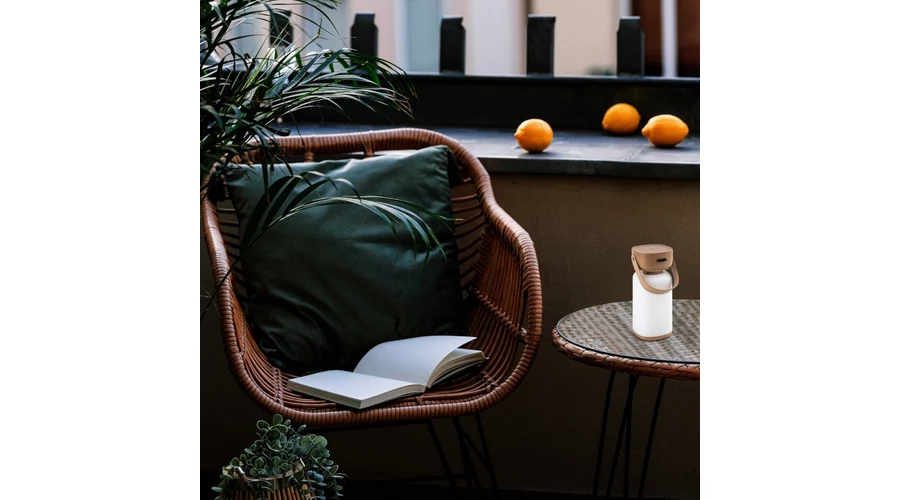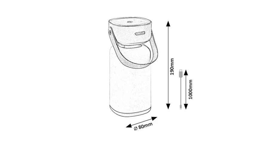 A Rábalux Funes kültéri dekor lámpa tökéletes választás a skandináv stílus és a gazdag funkcionalitással bíró design lámpák rajongóinak. A kültéri asztali lámpa teljes egészében műanyagból, barna színben, fehér búrával készül. A palack formára emlékeztető lámpatesthez bőrszerű fülecske kapcsolódik, amelynek segítségével a lámpa egyszerűen mozgatható. A lámpásként világító design lámpa IP védett, így biztonsággal használható a teraszon vagy a kertben. Beépített LED fényforrással rendelkezik, amelynek fényereje és színhőmérséklete érintőkapcsoló segítségével változtatható. Beépített akkumulátorral szerelték fel, amely USB-C típusú kábelen keresztül 3 óra alatt tölthető fel, és egy feltöltéssel 10 órán át üzemel. A LED technológia révén ezt a modellt hosszú élettartam jellemzi.