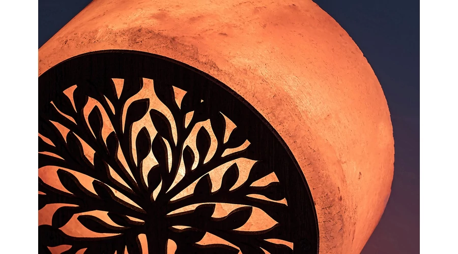 Az Igdrasil sólámpa meleg tónusaival és szemet gyönyörködtető dizájnjával modern nappalink berendezésének hangulatos darabja lehet. A jellegzetes formájú és mintázatú modell lépcsőzetes, négyszögletes dísztalppal készül, amely korong formájú, keleties motívumokkal díszített lámpát tart. A narancs árnyalataiban játszó Igdrasilt elhelyezhetjük egy stílusban hozzá illő asztalon vagy polcon. A kisméretű sólámpa egy darab legfeljebb 15 W teljesítményű fényforrással használható, a foglalat típusa E14. Ehhez a modellhez leginkább egy meleg fehér fényű fényforrás illik, amely segít otthonos, meghitt hangulatot varázsolni a szobába. Az Igdrasil dekorlámpa méretei a következők: szélessége 70 mm, magassága 160 mm, átmérője 150 mm. Ezt a modellt fényforrás nélkül szállítjuk.