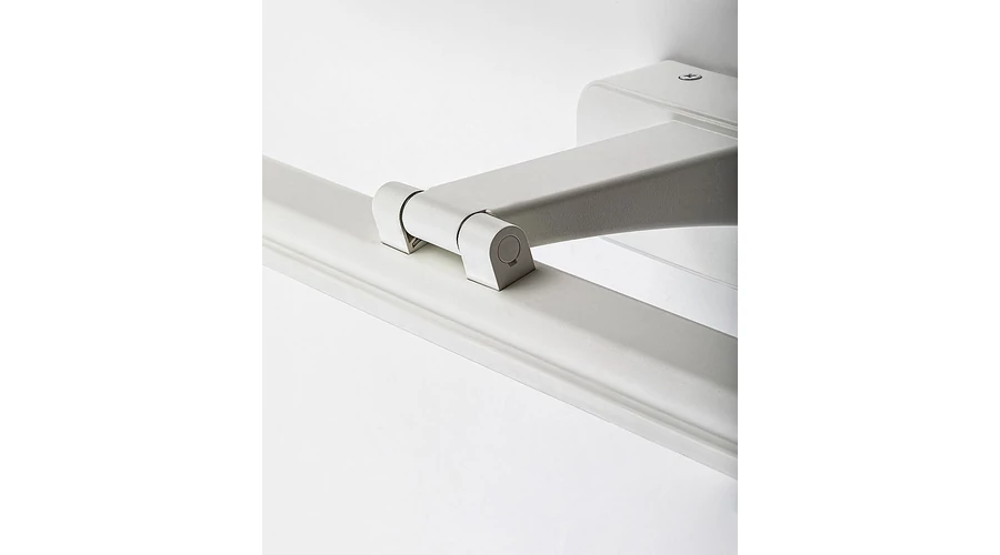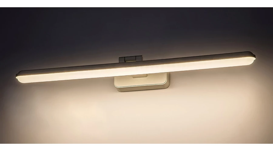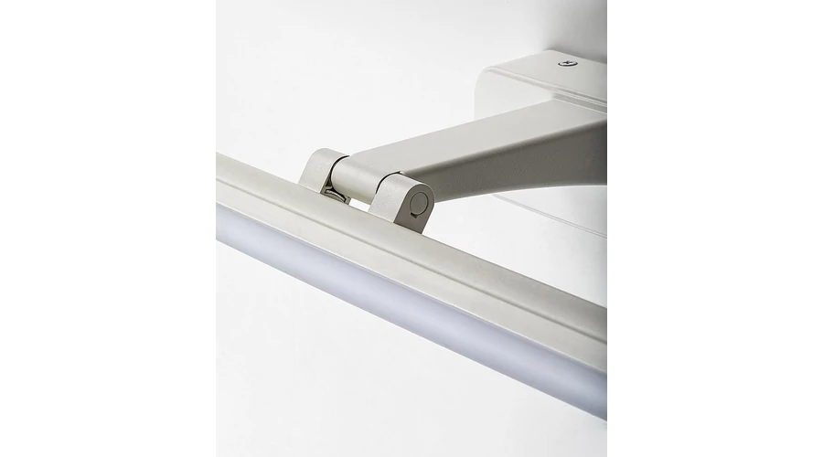 A modern stílusú Nabil képmegvilágító lámpa praktikus megoldást kínál a nappaliban elhelyezett, nagy becsben tartott festményeink vagy kedvenc családi fotóink megvilágítására. A célnak megfelelő, visszafogott dizájn jellemezte modell fénye szinte életre kelti a képeket. A matt fehér színben, műanyagból készült Nabil fali lámpát fehér akrilbúra egészíti ki, és lekerekített sarkakkal ellátott, téglalap alakú, matt fehér dísztalp segítségével rögzíthető a falra. Ez a modell a G energiaosztályba tartozó beépített LED fényforrással rendelkezik, amelynek a teljesítménye 15 W, fényereje búrával 1100 lumen, búra nélkül 1750 lumen, élettartama pedig 30 000 óra. A lámpa természetes fehér fényt sugároz, színhőmérséklete 4000 K. A Nabil méretei a következők: szélessége 610 mm, magassága 60 mm, faltól mért távolsága 160 mm, beépítési mélysége 150 mm. A képmegvilágító lámpa méretének megválasztásakor ügyeljünk rá, hogy alkalmas legyen a teljes kép megvilágítására, ne maradjanak árnyékos részek.