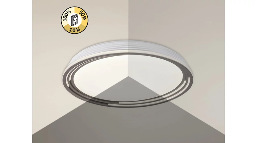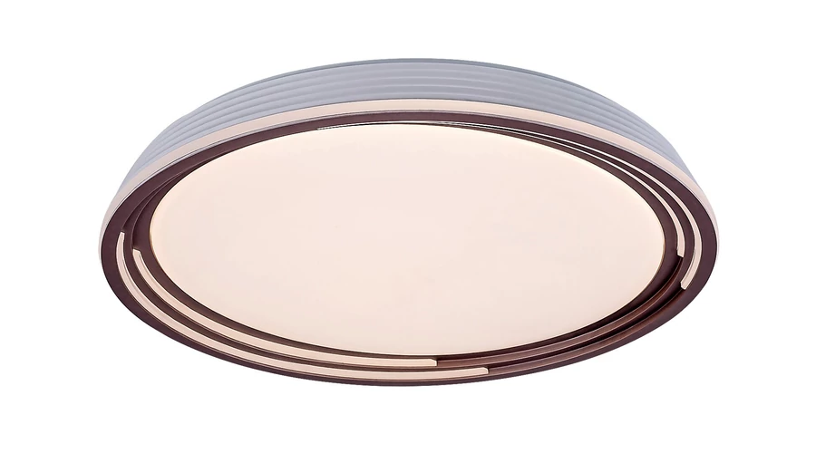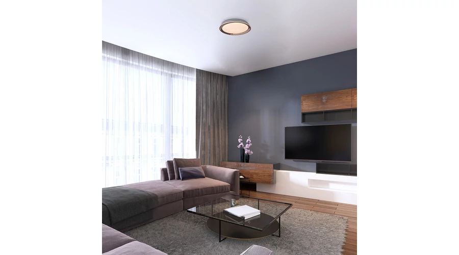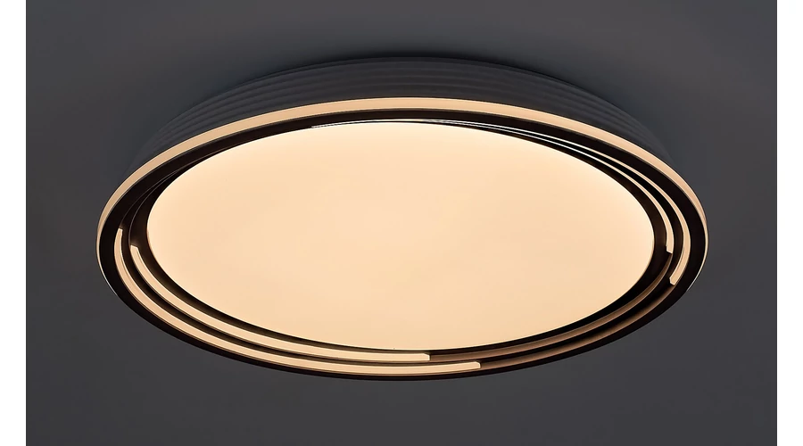 A nagyméretű, kerek Valter mennyezeti lámpa visszafogott dizájnjával és jelentős fényerejével remek választás lehet szinte bármely modern nappaliba, hálószobába vagy dolgozószobába. A barna színű, fém lámpatestből és fehér műanyag búrából álló modell diszkréten simul bele a mennyezet világos színébe. A Valter energiatakarékos, beépített LED fényforrást tartalmaz, amelynek teljesítménye 36 W, fényereje 2250 lumen, élettartama pedig 30 000 óra. A fényforrás színhőmérséklete 3000 K, ennek megfelelően meleg fehér fényt sugároz, otthonos, meghitt hangulatot teremtve a szobában. A lámpa dimmelhető, azaz fényereje fali kapcsoló segítségével 3 lépésben állítható. A Valter mennyezeti lámpa átmérője 515 mm, mennyezettől mért távolsága 80 mm.