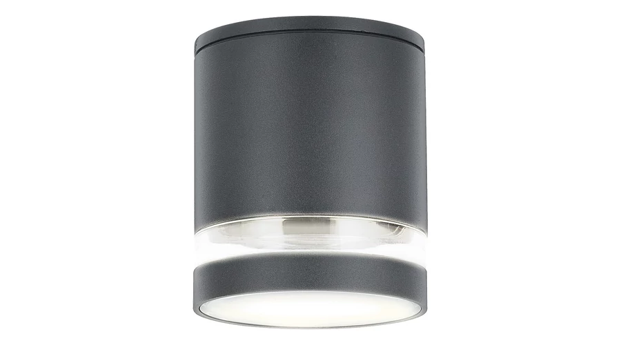 A modern stílusú, henger alakú Zombor kültéri mennyezeti lámpa antracitszürke színben készül, a lámpa anyaga alumínium. A dizájn sajátossága, hogy a sötét színű burkolatot körben egy vékony sávban megtöri az átlátszó műanyag búra. Ez a lefelé világító modell kiválóan alkalmas a terasz megvilágítására. A Zombor egy darab, legfeljebb 35 W teljesítményű fényforrással használható, a foglalat típusa GU10. A meghitt, otthonos hangulat megteremtéséhez meleg fehér fényű fényforrást ajánlunk hozzá. A kültéri mennyezeti lámpa átmérője 102 mm, mennyezettől mért távolsága 120 mm. Bátran felszerelhetjük kevésbé por- és esővédett helyen is, mivel IP54-es védettséggel rendelkezik, azaz por ellen, valamint bármilyen irányból fröccsenő víz ellen védett. A lámpát fényforrás nélkül szállítjuk.