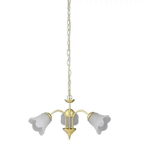 Klasszikus megjelenésű csillár 3 darab foglalattal. 90 cm hosszú, 60 cm átmérőjű, arany színű fémből készített lámpatest fehér opálüvegbúrákkal. A lámpatest E14-es foglalatú, max. 3x 40W teljesítményű halogén vagy energiatakarékos fényforrásokkal használható.