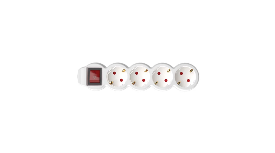 Az NV 4K/WH Kapcsolós hálózati elosztó 4 db aljzattal ellátott, melyet egy fő kapcsolóval áramtalanítani tud. A biztonságos használat érdekében IP 20 védelemmel és gyermekvédelemmel ellátott. A fehér színű elosztó 1,5 m hosszú H05VV-F 3G1,0 mm2 kábellel felszerelt. Maximum 3500 W-ig terhelhető.